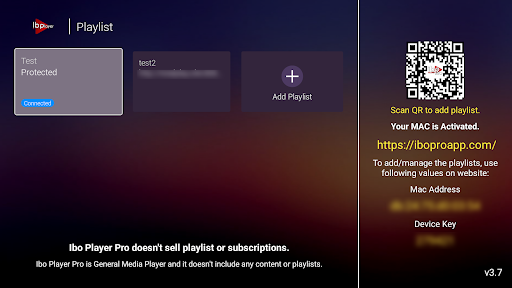 À l’ouverture de l’application, notez votre MAC Address et votre Device Key.Ces informations sont nécessaires pour activer votre IPTV subscription.